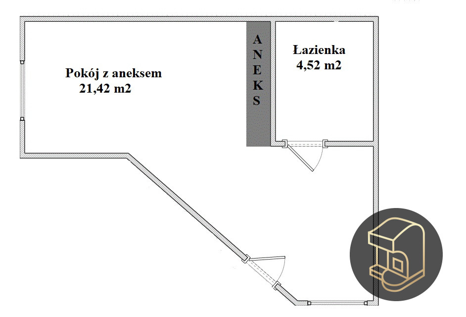 - pokoju z aneksem kuchennym o pow. 21,42 m²