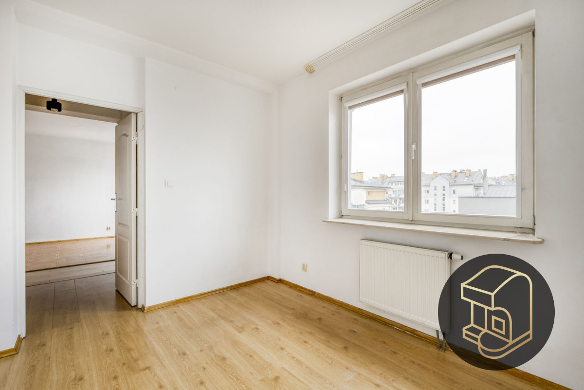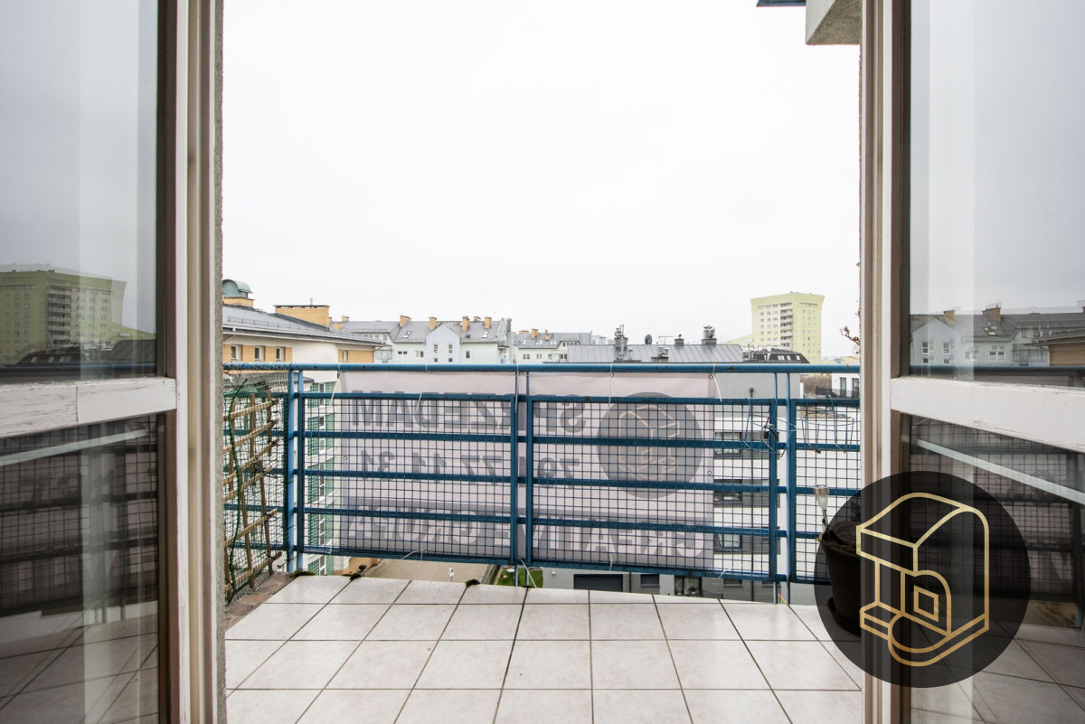 Z salonu do sypialni prowadzi krótki korytarz, w którym zmieści się dodatkowa szafa, oszczędzająca miejsce w innych pomieszczeniach. Z balkonu rozciąga się widok na okolicę - widać nawet Stadion Narodowy.