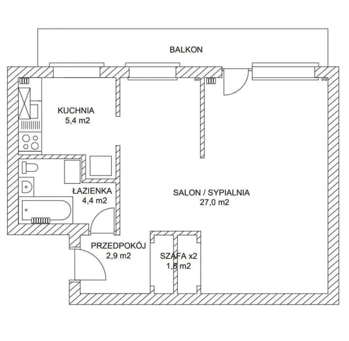 Mieszkanie o powierzchni 41,5 m² składa się z:Przestronnego salonu pełniącego funkcję sypialni,