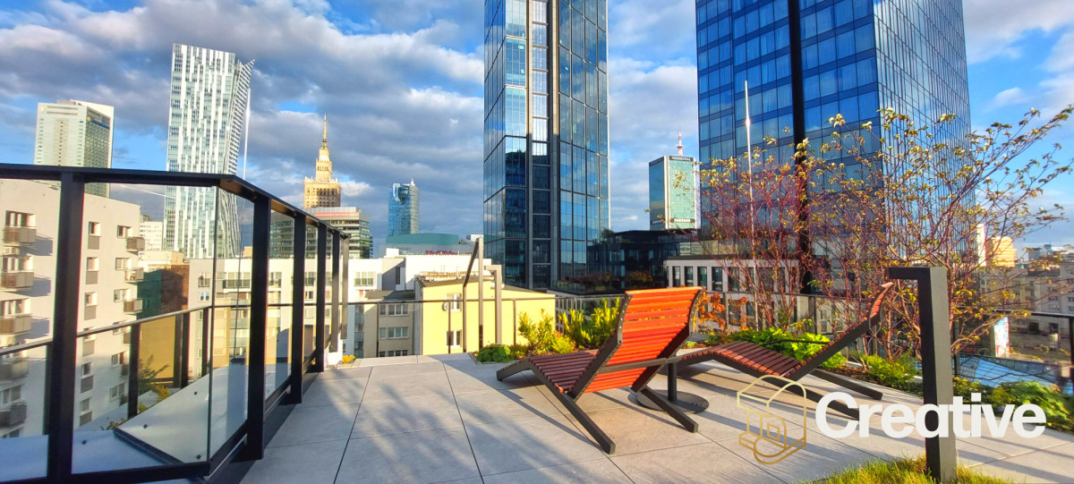 Nowy apartament w centrum miasta czeka na pierwszego najemcę! Mieszkanie idealne dla singla lub pary szukających cichej i bezpiecznej enklawy w nowoczesnej, prestiżowej lokalizacji. Gdzie poza prywatną loggią (12m2) można skorzystać z ogromnego, zielonego tarasu na dachu budynku z widokiem m.in. na Pałac Kultury i Nauki.