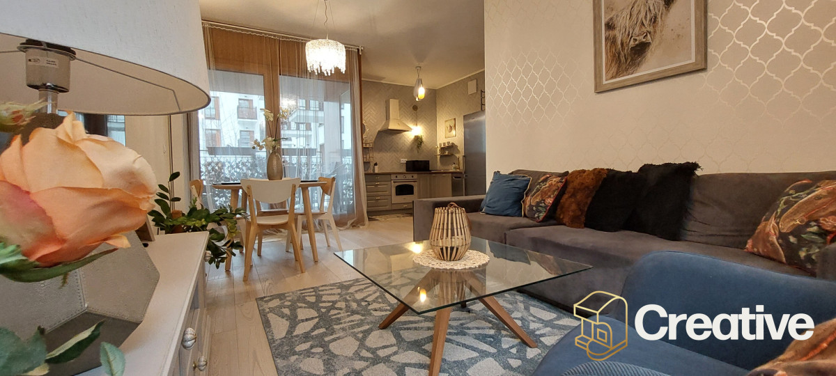 Styl i elegancja na 60m2 w prestiżowej lokalizacji. Cichy balkon od strony patio i miejsce parkingowe w garażu. Pełen komfort i wygoda czekają na nowego domownika.
