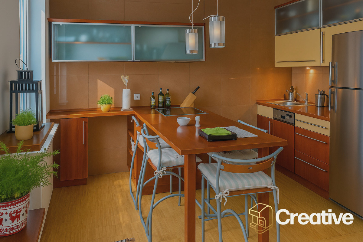 Funkcjonalna kuchnia z oknem wyposażona jest w podstawowy sprzęt AGD. Jej ustawność pozwala łatwo wydzielić strefę gotowania i jadalni - to świetne rozwiązanie dla rodzin ceniących wspólne posiłki.