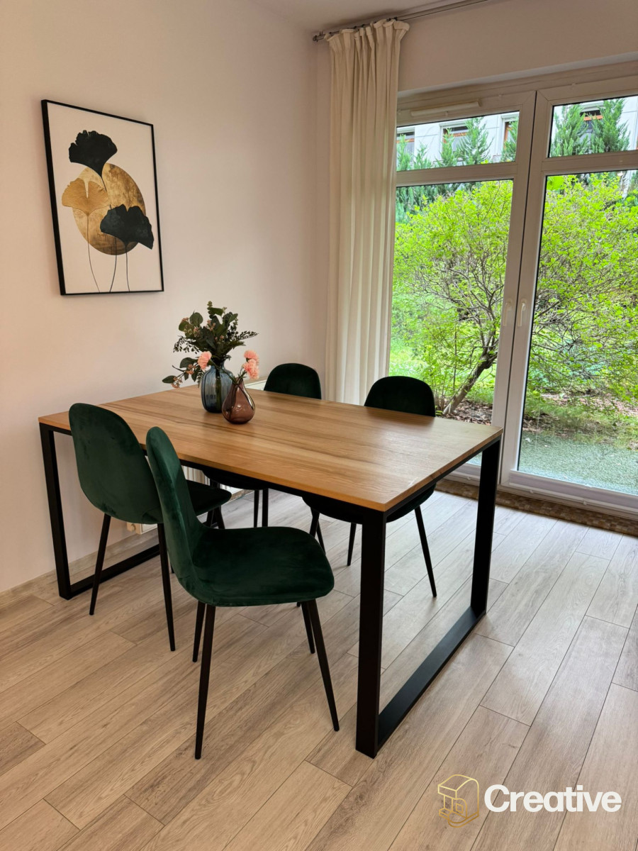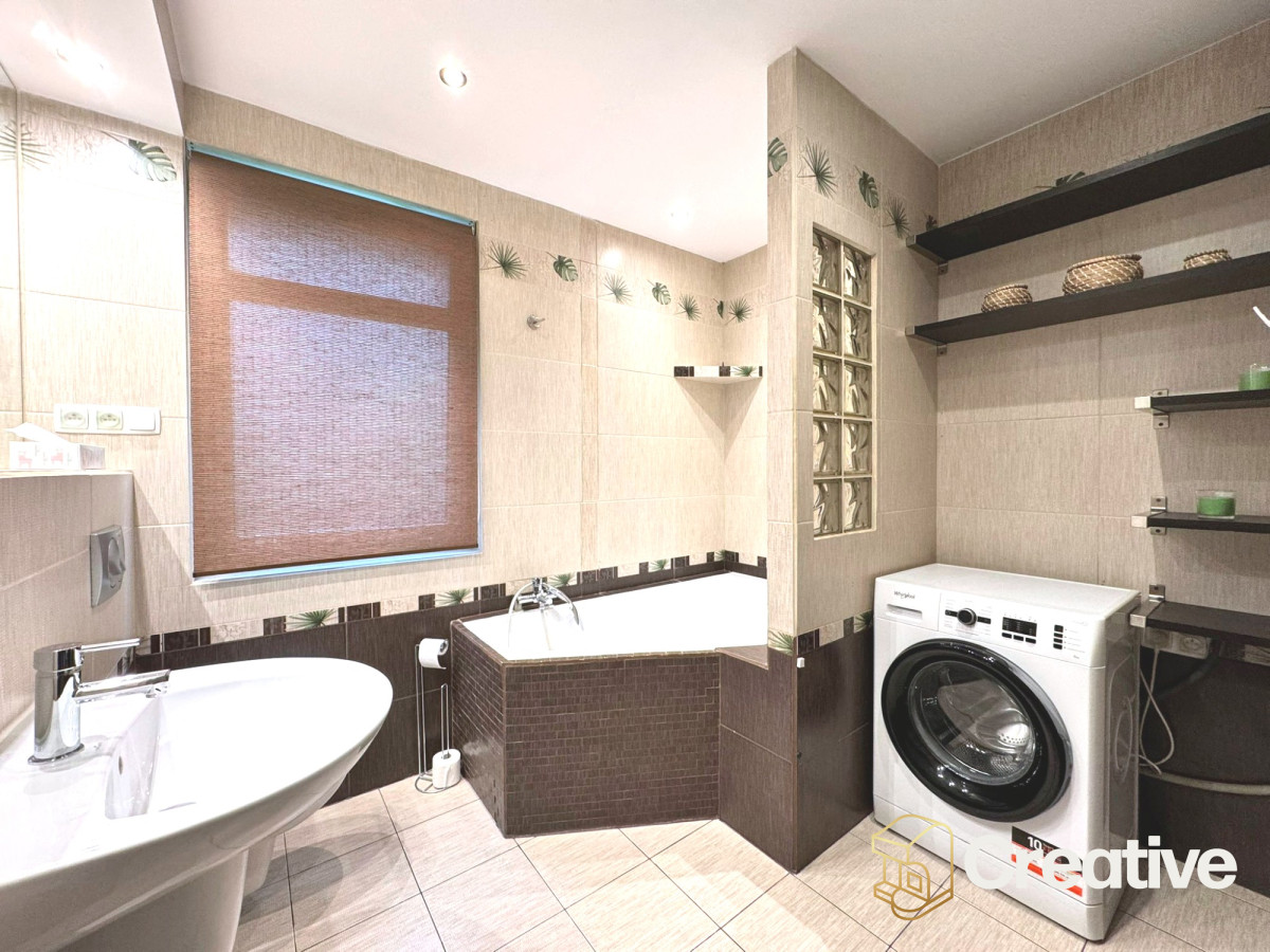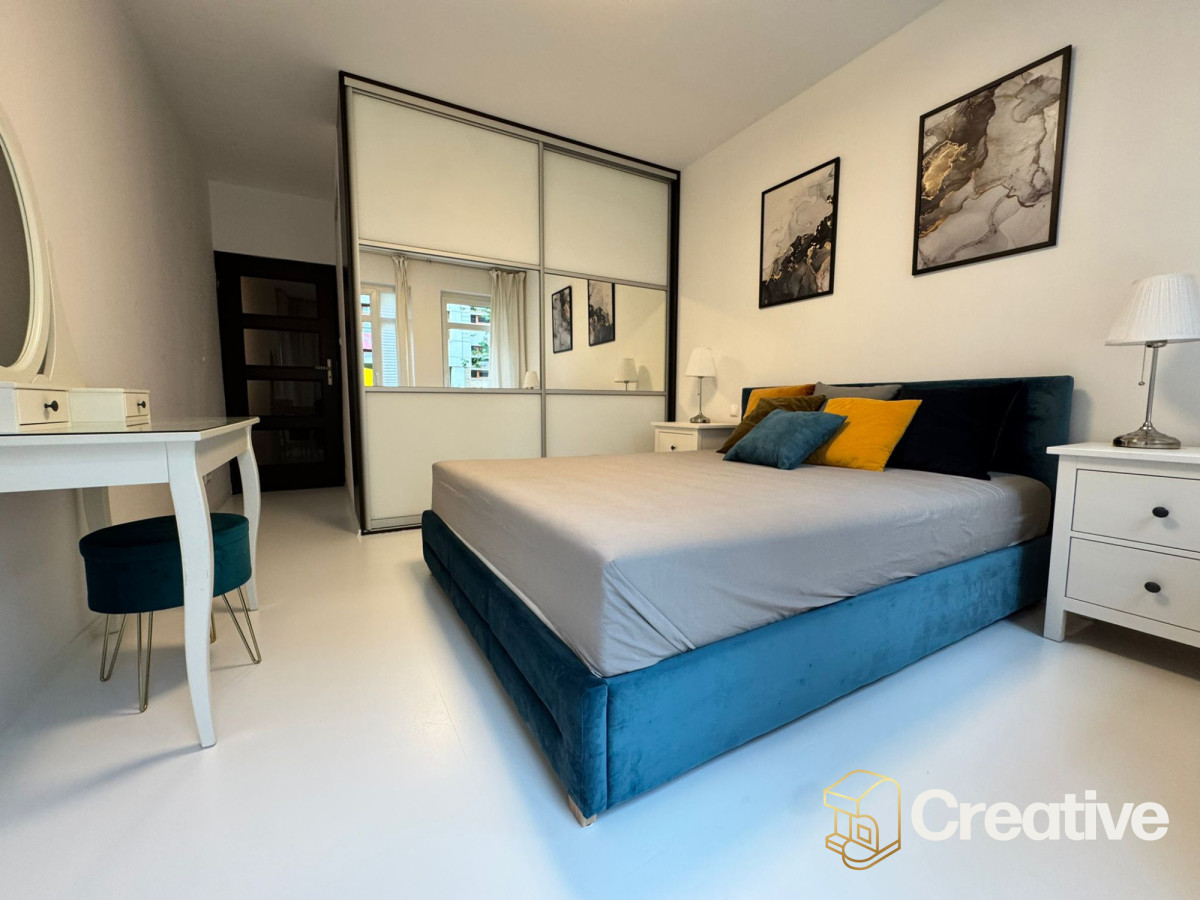 Nowoczesny, jasny i cichy apartament, wykończony materiałami wysokiej jakości. W pełni umeblowany i wyposażony w sprzęt AGD (lodówka, zmywarka, piekarnik, płyta indukcyjna, okap, pralka). Zabudowa meblowa na wymiar - funkcjonalna kuchnia z podwieszanym sufitem i oświetleniem punktowym, przestronne szafy z pawlaczem w przedpokoju i dużej sypialni, praktyczne rozwiązania do przechowywania. Łazienka z oknem mlecznym, ogrzewaniem podłogowym oraz dużym prysznicem z wanną.