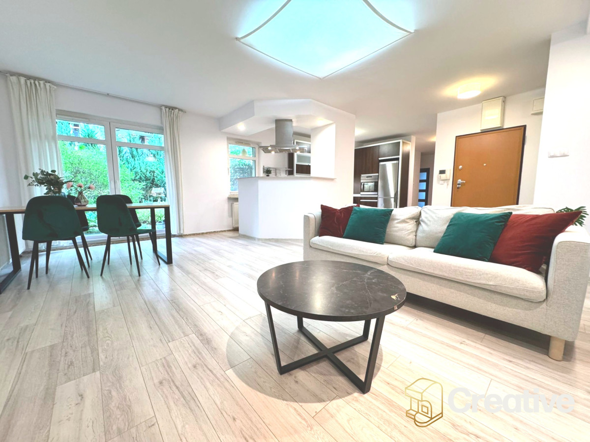 Przestronne ,widne mieszkanie w miasteczku Wilanów, znajduje się na parterze i składa się z 3 pokoi, kuchni, łazienki, wydzielonej części na gabinet o łącznej powierzchni 82 m2.