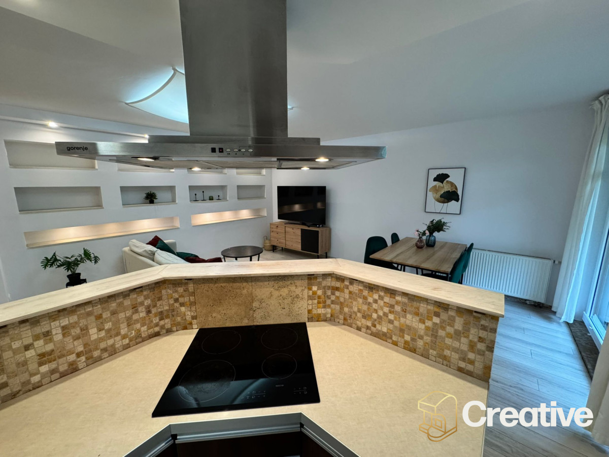 W pełni wyposażony aneks kuchenny: płyta indukcyjna, piekarnik zmywarka, lodówka ,mikrofala, filtr wody,