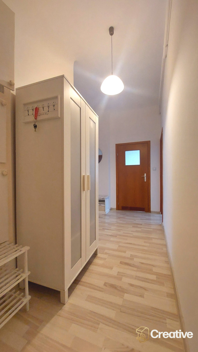 Przestronny korytarz (blisko 13 m²) - przestronny, z dużą, pojemną szafą - wygodne miejsce do przechowywania ubrań, butów i codziennych rzeczy.