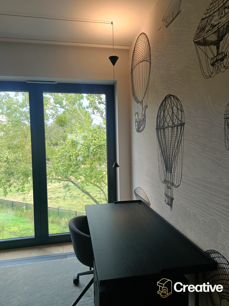 Apartament położony jest w zielonej, spokojnej części Mokotowa, w sąsiedztwie kortów tenisowych i terenów rekreacyjnych. To doskonałe połączenie ciszy i bliskości natury z szybkim dostępem do infrastruktury miejskiej.