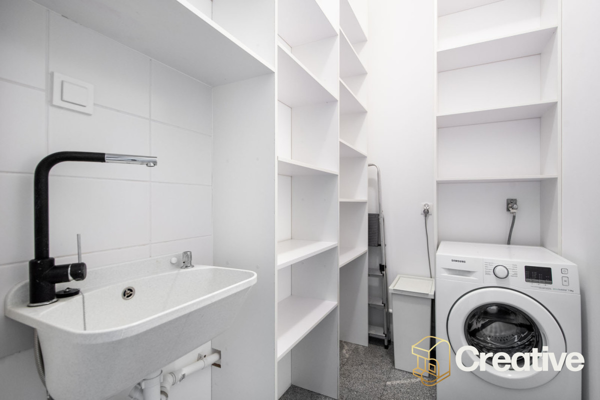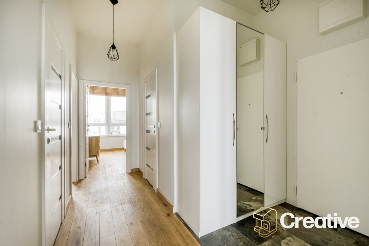 Mieszkanie wykończone w świetnym standardzie. Na podłodze deska podłogowa. W kuchni pojemna zabudowa oraz blat drewniany. Większa sypialnia wyposażona w podwójne łóżko oraz dużą szafę. Pralnia / garderoba rozwiązuje problem trzymania nawet większej ilości rzeczy. Całość przemyślana i spójna.